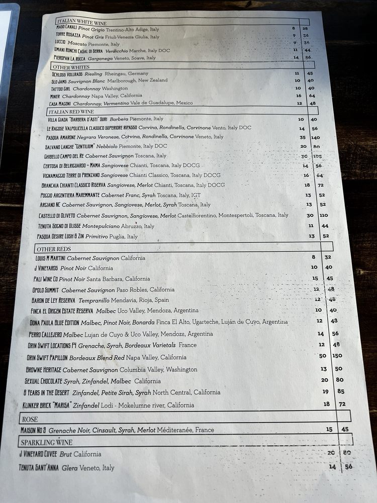 - Panzanella salad at $6 complements these pizzas perfectly.